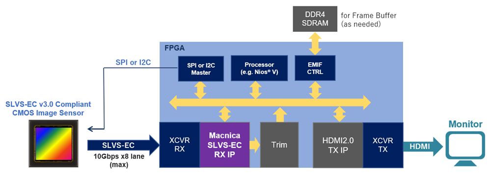 SLVS-EC v3.0 Rx IP is an interface IP core conceived to run on multiple FPGAs. Using this IP, users can implement products that support the latest SLVS-EC standard v3.0. Macnica ATD Europe has also created an evaluation platform with the tools needed to start developments. The FPGA can receive signals directly from the SLVS-EC Interface. It supports De-Skew functionand enables board design without considering skew that occurs between lanes.