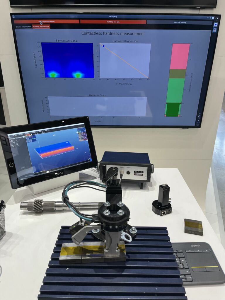 The µmagnetic measuring system from Qass tests the hardness of ferromagnetic materials without contact. The properties of the material become visible live through real-time spectral analysis. Components can be measured within 200ms. To determine the hardness, the material to be measured is exposed to an alternating magnetic field and the reorientation of the individual magnetic domains in the microstructure of the material is measured.