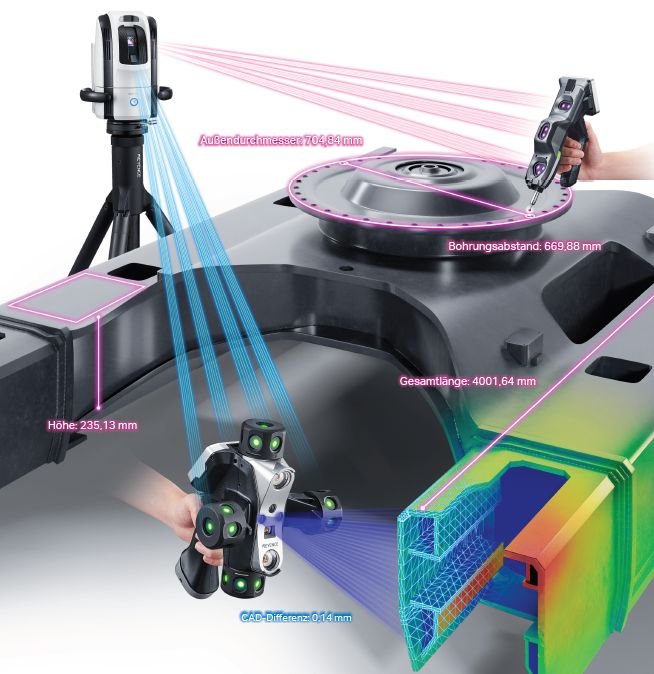 With the WM-6000, Keyence presents the latest generation of the WM model series, which combines tactile measurements and laser scanning. The system enables profile and shape measurements as well as checking oversizes and machining allowances. The measuring range is 25m and the device is set up and ready to measure in two minutes. Thanks to the self-diagnosis function, it is also maintenance-free.