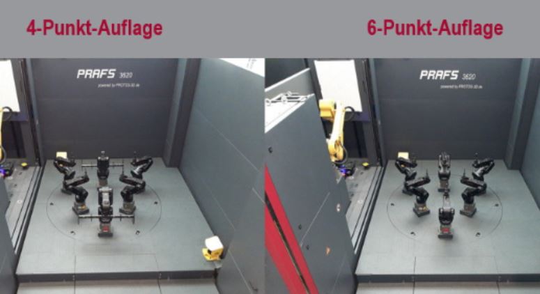 The Protos 3D virtual clamping fixture Prafs 3620 (standard 3-point support) is now also available as a 4-point and 6-point support for large sheet metal components (front panels, roofs, and side frames) for measuring ranges up to 3.200mm. All three versions can be converted in two minutes. The extension offers full compatibility with the standard Prafs 3620 in all 6X, 7X, and 8X scan boxes. Additionally, add-on components (doors and flaps) can be scanned, measured, and evaluated with Zeiss Inspect.
